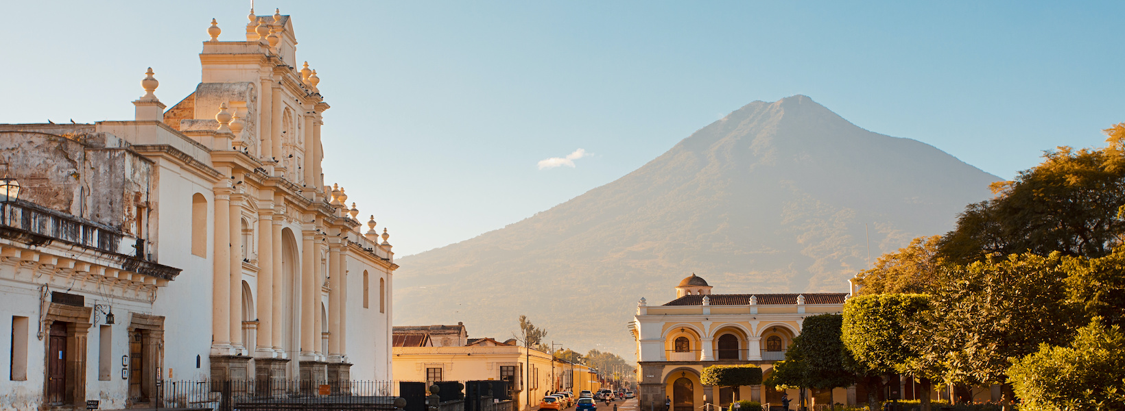 Antigua Guatemala with Aqua Volcano in the background